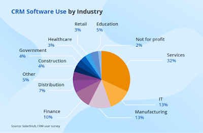 As per the recent survey by SelectHub’s CRM user survey , almost 32% of the users of CRM is from service industry . Another major share of 13 % is acquired by IT and manufacturing companies and retailers companies are taking market share of 18 % .